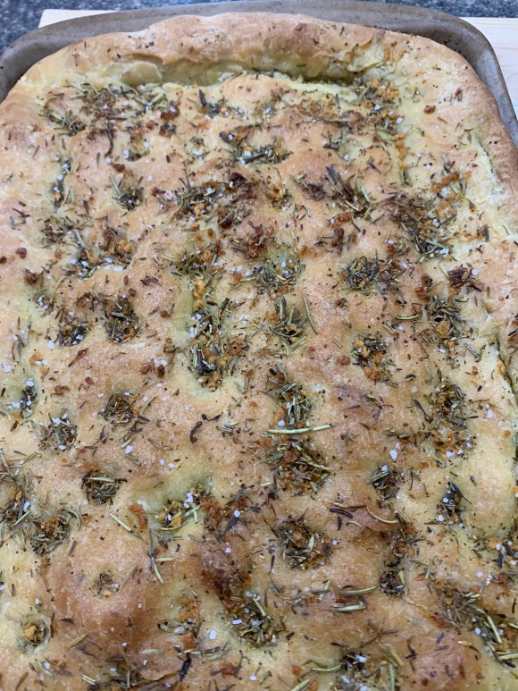By the time I was done, I had made two lemon/orange poppyseed loaves ( my own version of a lemon poppy seed loaf.) And a lovely Focaccia Bread.