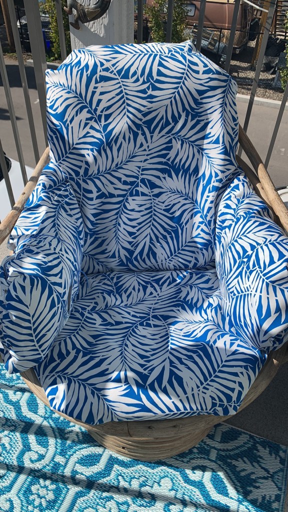 Ah yes the title, well, give a girl safety pins and zip ties and bungee cords and she can fix, find solutions for all kinds of things. In this case a much loved chair that belongs to a dear friend, it sits on my deck, its broken, but its comfortable, using some wooden wedges and zip ties I managed to get it so it sits straight, instead of flopping around, then to try to protect the original cushion covers I fabricated one out of material using the tuck and pin technique. See photo: